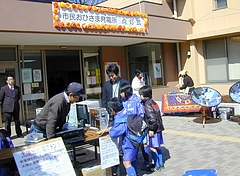 第1部セレモニーでは子どもたちがスイッチを押して「おめでとうソーラー発電」という看板を光らせ、そのLEDにもおひさまでできた電気が使われていることをアピールしました。第2部で子どもたちは手回し発電機と太陽光の発電との勝負「太陽光発電でドン」にチャレンジしたり、ソーラーカーを走らせたり、ソーラークッカーで作ったおやつを食べたりして、おひさまのパワーをいっぱい感じてもらえたと思います。