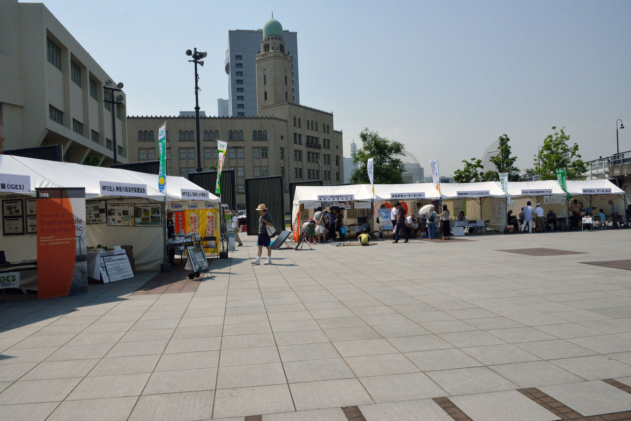 場所は、昨年と同じ「象の鼻パーク」、「あそこはあまり観客が来ないので、日本大通りの方にNPOのブースも織り交ぜてほしい」と、県・環境計画課にお願いをしたのだが、「今年はあの広場でいろいろなイベントもやるので大勢人が来ますから」といなされてしまったいきさつがある。