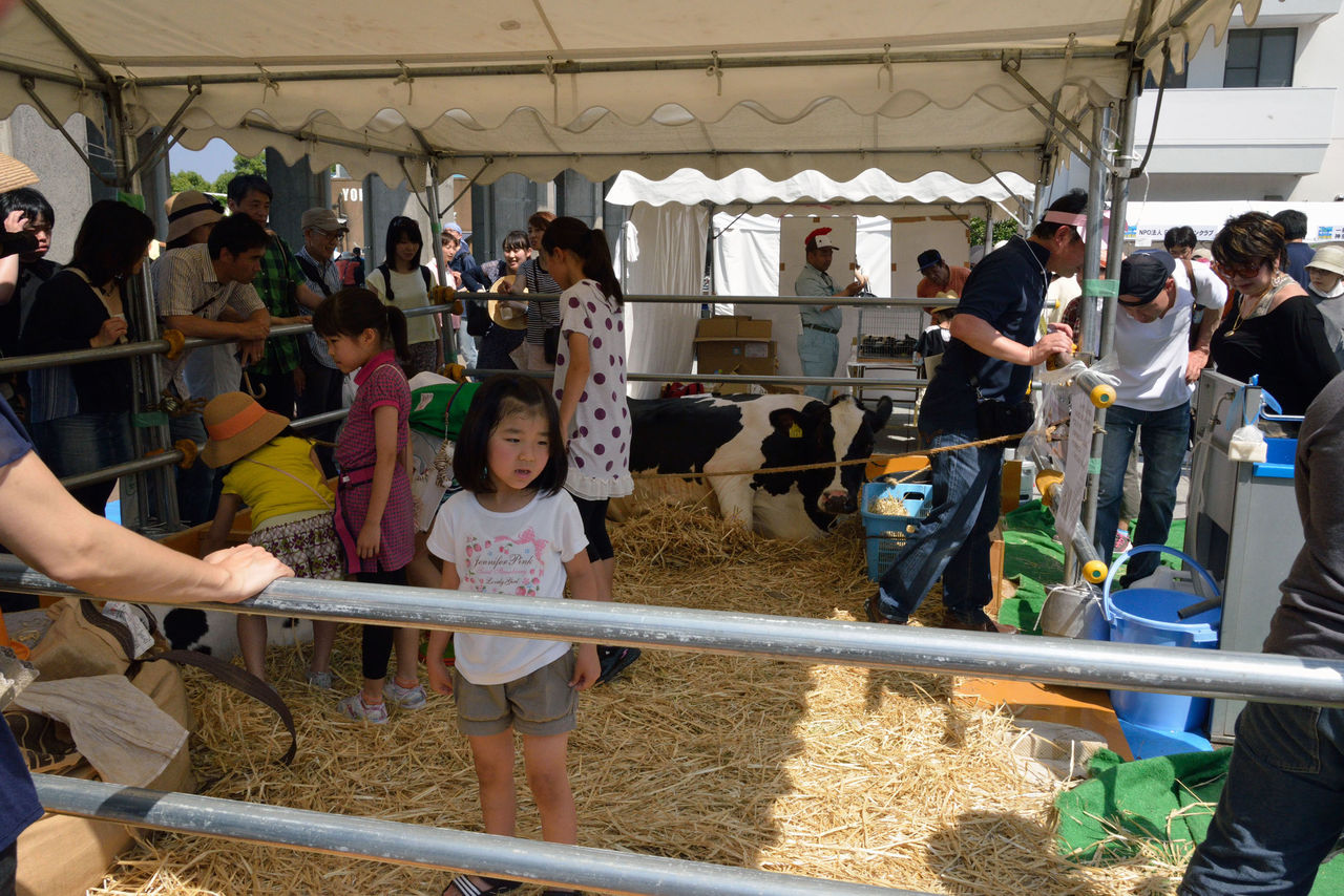 しかし、今年も片隅で、初日はユルキャラたちと子供たちのダンス、2日目は子供たちと牛やヤギなど動物との触れ合いイベントをやっていたが、あくまで片隅の賑わいで、多くの人たちは各展示ブースのほうへは来ないか、素通りである。(写真参照)