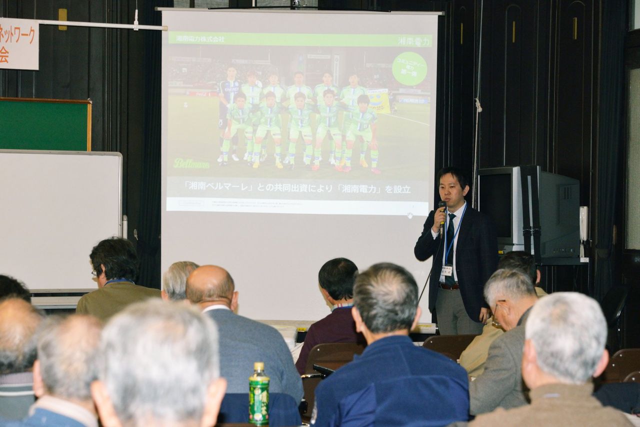 パネルディスカッションで湘南電力の説明をする渡部氏