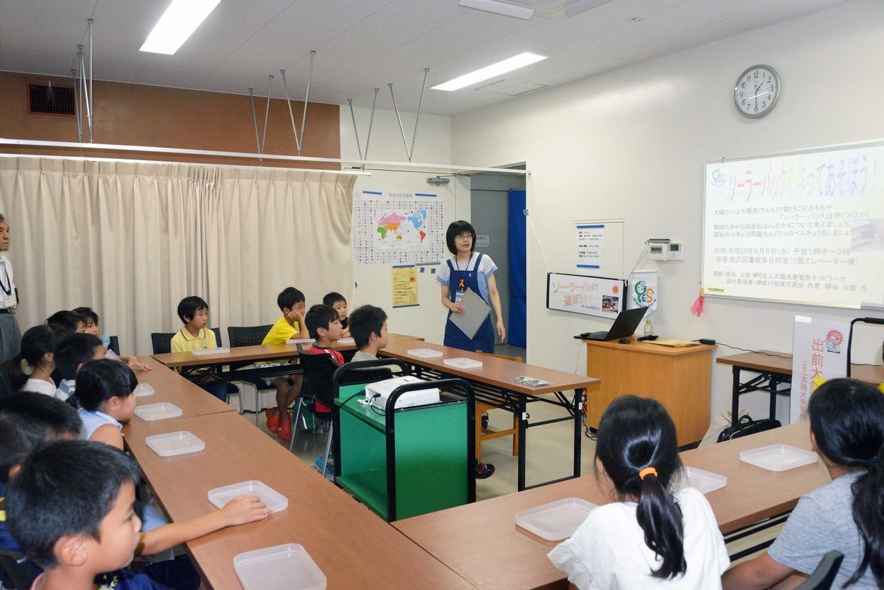横浜市温暖化対策統括本部が夏休みのエコスクールとして募集したところ、旭図書館、金沢図書館、瀬谷図書館の3図書館が応募。それぞれが、工作教室的な催しを希望、わがPV-Net神奈川地域交流会が引き受けることになった。