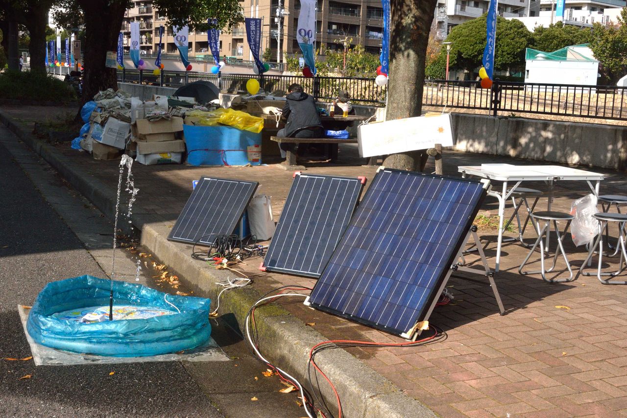 ③「出前発電所展示・と発電」 ④「噴水」、 ⑤「太陽光発電でドン!」