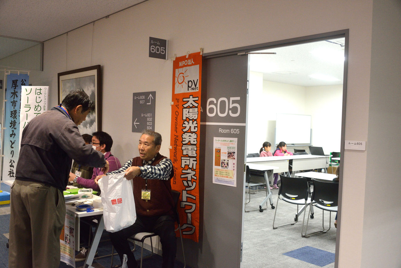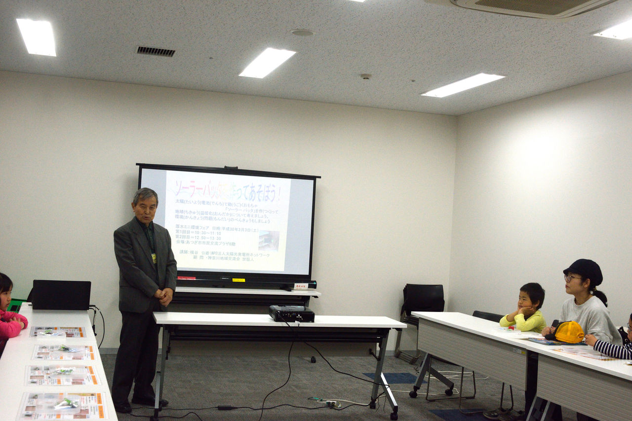 あつぎミニ環境フェア(2018-3-3)「ワークショップ、ソーラーバッタを作ろう」が開催された